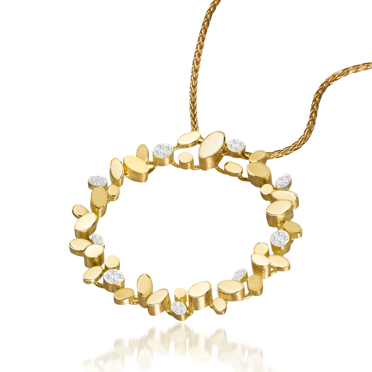 18k yellow gold necklace with diamonds.