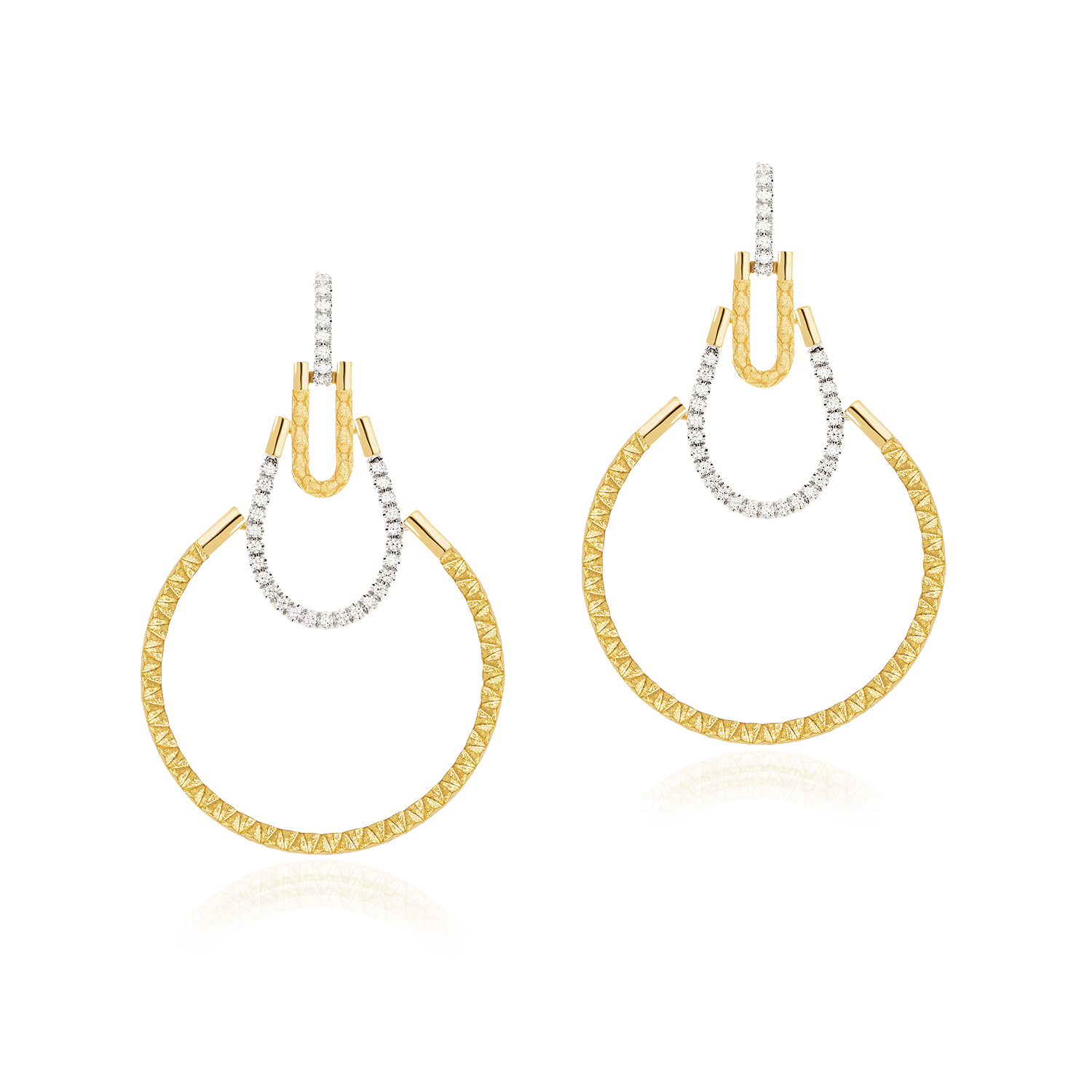 18k yellow and white gold earrings with diamonds. Large size.