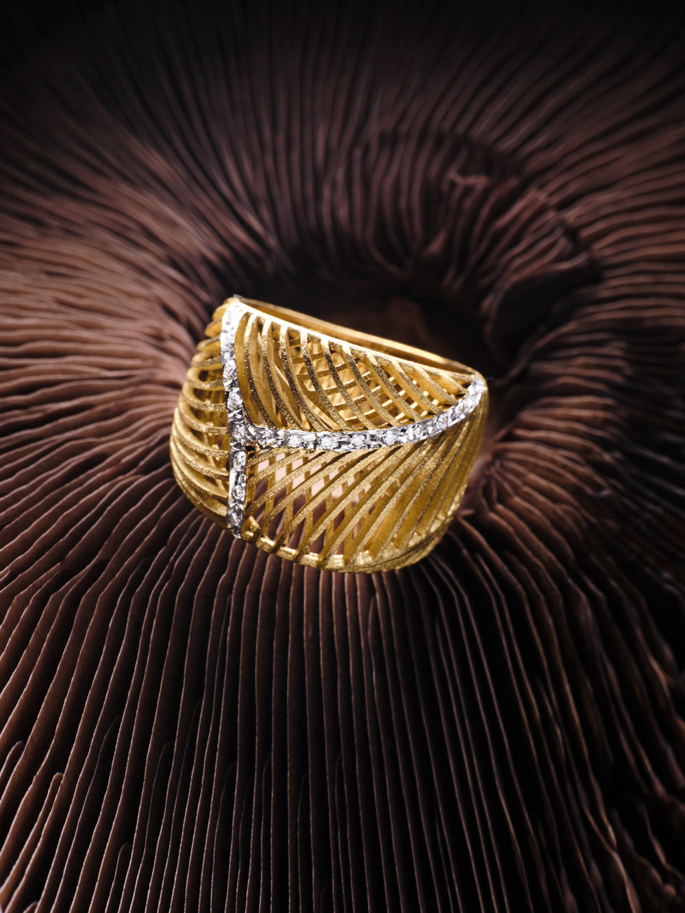 The TRIBE collection is inspired by the design of leaves, their density, their veins and overlapping layers. The distortion of each form, through convex and concave planes as well as the reinvention of volume underline the light and shadow effect. TRIBE is a collection that takes us on a journey of perpetual discovery in which the exotic reveals itself.